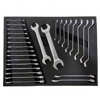 - 10 Chaves Combinadas 6-7, 8-9, 10-11, 12-13, 14-15, 16-17, 18-19 e 20-22, 24-27, 30-32mm.