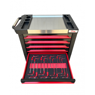 Carrinho de ferramentas com 200 peças. As ferramentas são variadas e as funções das ferramentas são diferentes para atender as necessidades de manutenção. O carrinho possui rodas na parte inferior.Contém travas onde não há a necessidade de trancar para fechá-las, acompanha chaves.